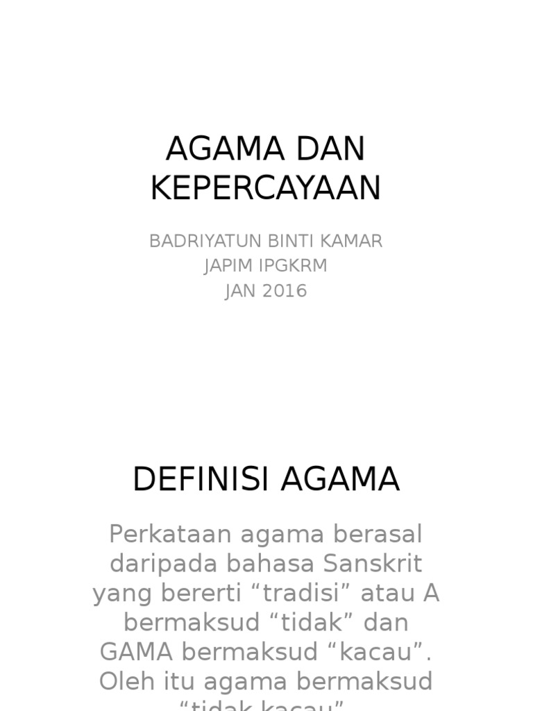 Kefahaman dan tingkah laku beragama boleh memisahkan atau membira hubungan sesama penganut dalam sesuatu agama. Berbicara tentang agama keperercayaan dan begitu pula sebaliknya terkadang sulit untuk membedakan mana agama dan mana kepercayaan. Agama menurut wikipedia adalah sebuah koleksi ter organisir dari kepercayaan sistem budaya dan pandangan dunia yang menghubungkan manusia dengan tatananperintah dari kehidupan Agama juga bisa diartikan sebagai suatu kepercayaan yang membudaya yang mana menjadi norma tertinggi bagi penganutnyaAgama menitik beratkan pada kepercayaan.